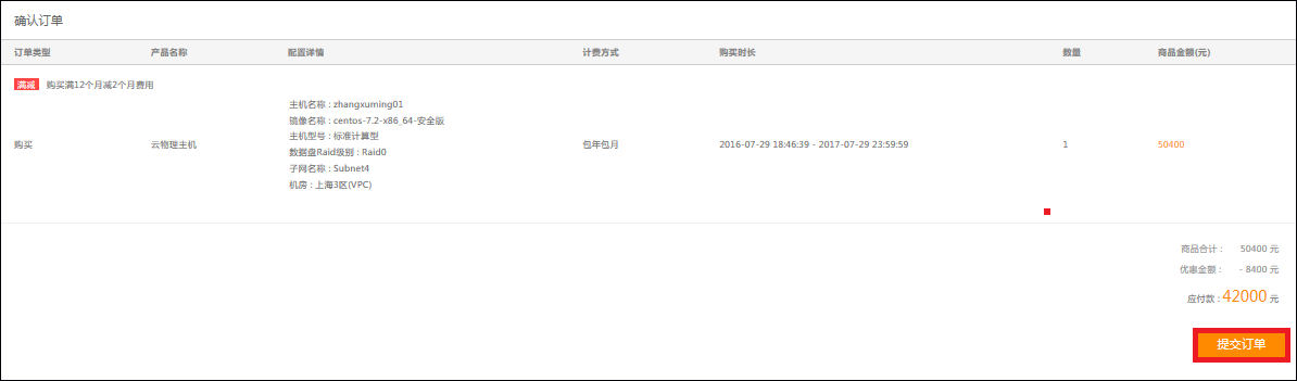 核对信息后提交订单: