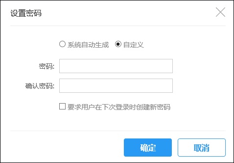 - 可以选择系统自动生成或者手动输入用户密码,并可以指定要求用户在下次登录时创建新密码