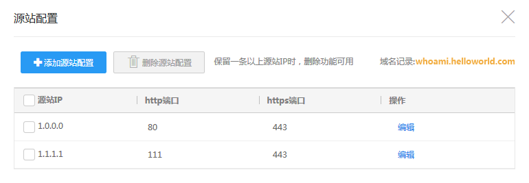 进入编辑模式,可修改源站IP和端口号;