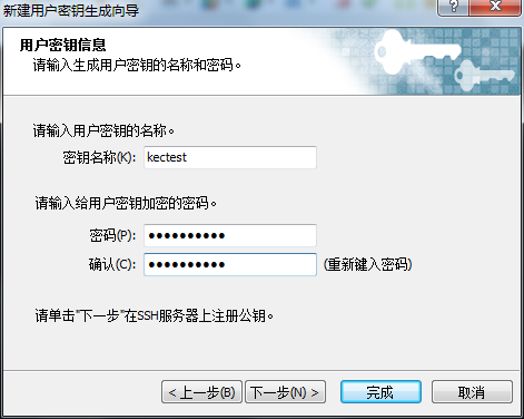 弹出如下窗口,填写key name,以及key验证时的密码