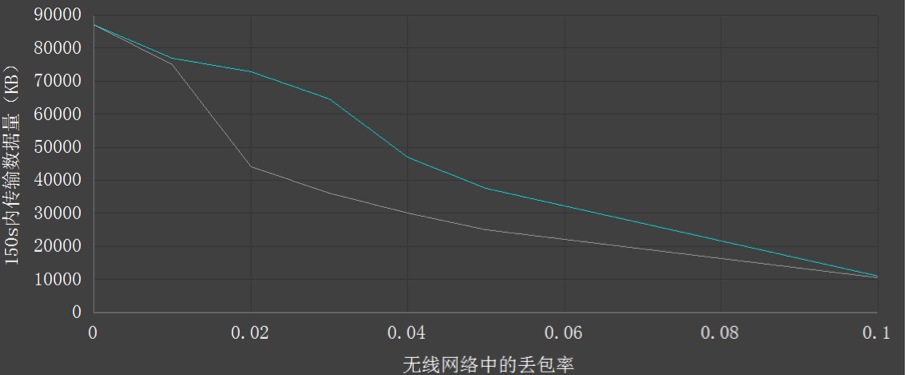 相比未优化过的服务,无线版镜像在随机丢包的应用场景下,大幅度提高应用程序download数据的性能(带宽和服务器计算资源足够)。