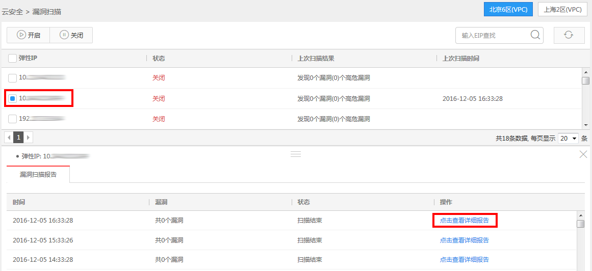 选择扫描IP,在下侧弹出的面板中可以看到历史的扫描报告。