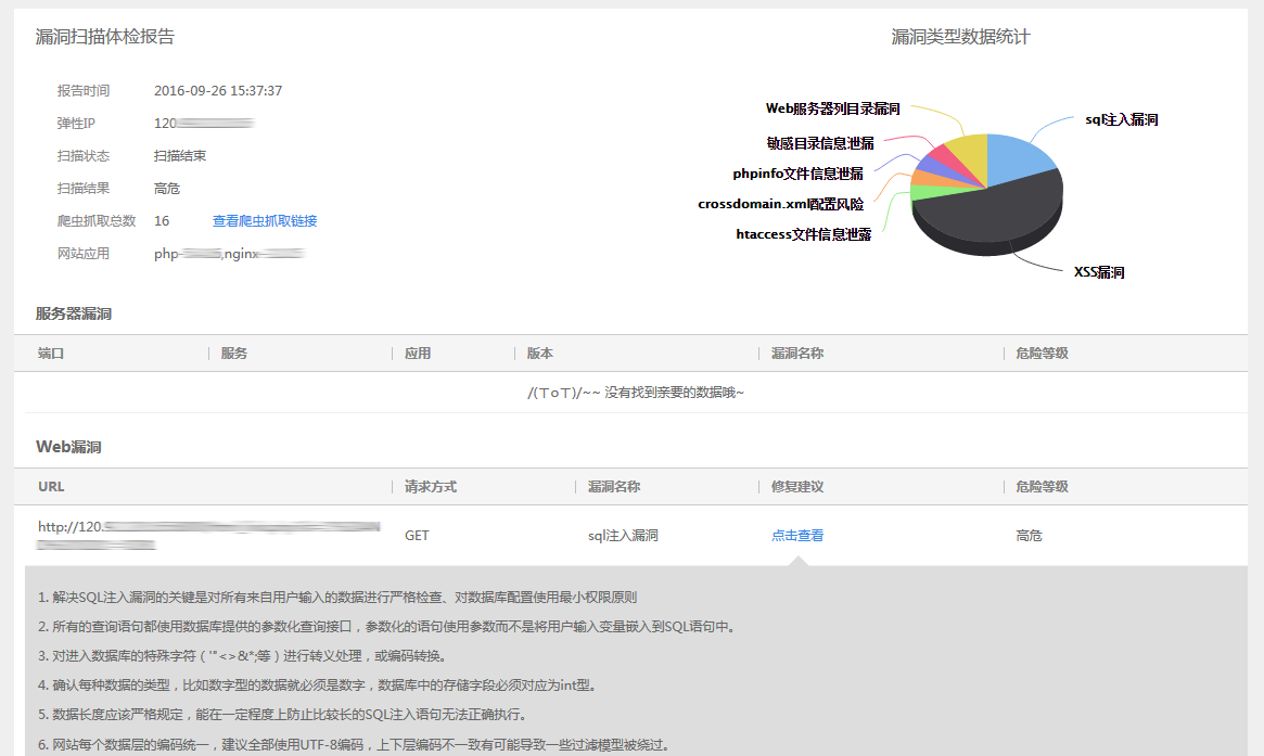 在下侧的历史报告中单击“点击查看详细报告”,可以看到每次扫描的具体信息。