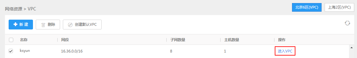 1. 点击控制台首页“虚拟私有网络”,进入控制台“VPC”功能。